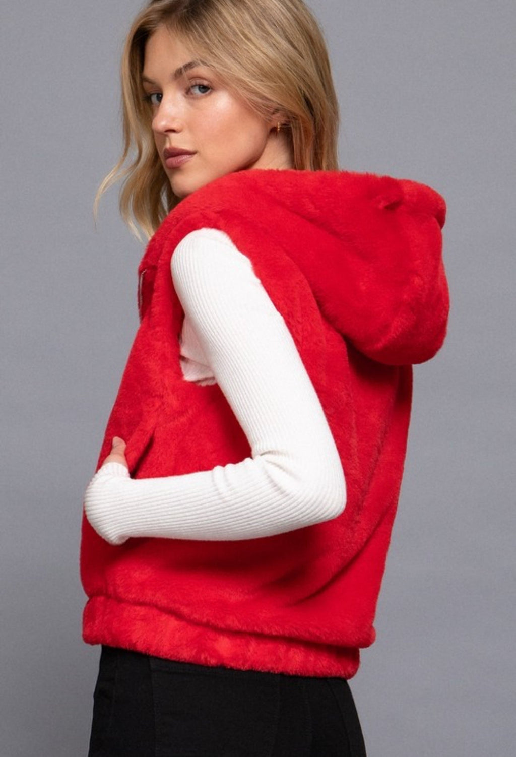 Introducing the Becky Hoodie Faux Fur Vest, the perfect combination of style and comfort. Made with a luxurious faux fur material, this vest features a convenient hoodie for added warmth. Stay cozy and fashionable all season long with the Becky Hoodie Faux Fur Vest.